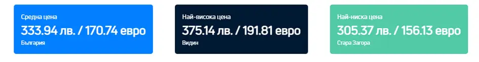 Средна цена за България: 333.94 лв. / 170.74 евро