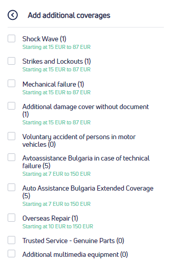 See how the included coverages and available add-ons are displayed on the 24ins platform.
