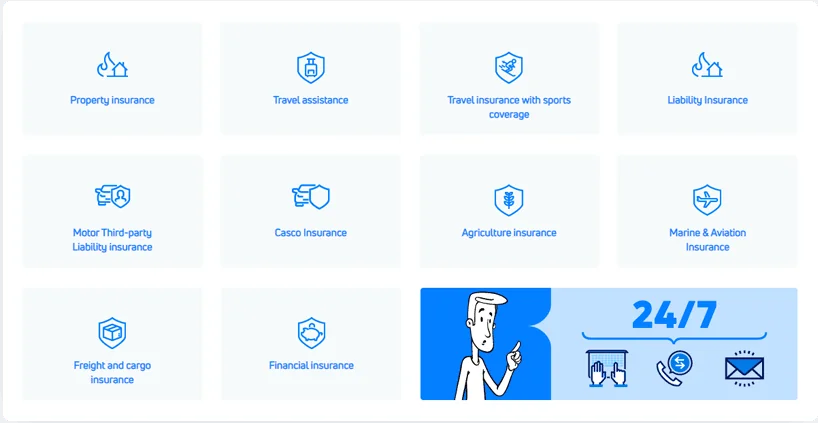 + national phone number, at the price of a local call: 24/7. + online chat help system: Monday to Friday, 9:00 to 17:30. + nationwide partners offices + 24-hour telephone number for assistance in the event of an accident (for "Motor Third-Party Liability" and "Casco" insurance)